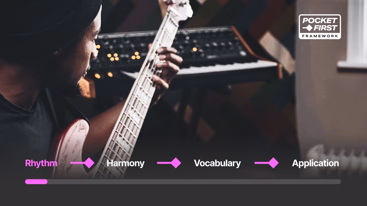 Yes. This isn’t just about theory — it’s about how to actually use harmony inside funk. Even if you already know scales and chord tones, the Pocket First Framework shows you how to make them groove. Plus, the Vocabulary of the Greats module will open up ideas you won’t find in any theory book.